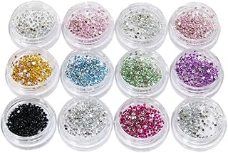 2600 Strasssteine rund 1,2 mm in Sortierbox - 12 Döschen farblich sortiert