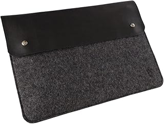 ViSation Nachhaltige Laptoptasche Schutzhülle für 13/13,3 Zoll, Notebookhülle 35x25cm, Leder, Filz, Schwarz/Grau, Handmade, Made in Germany, Business, Reisen, Uni