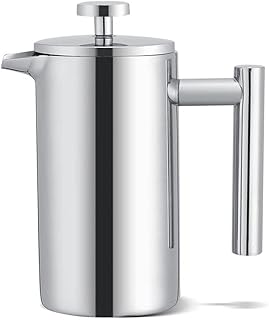 ERAVSOW Edelstahl French Press,Kaffeekanne,Pressstempelkanne, doppelwandig, isoliert, Edelstahl, mit Messlöffel, 1000 ml