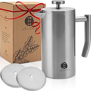 coffeechilla® Premium French Press Edelstahl 0,6 Liter I Anti-Fingerprint I Kaffeepresse mit Thermoeffekt - doppelwandig isoliert I Pressstempelkanne I Kaffeebereiter inkl. 2X Ersatzfilter