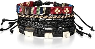 Herren Leder Armband Set, Retro Wickelarmband Kugel Perlen Leder Seil Geflochten Armreif Perlenarmband Surfer Surferarmband