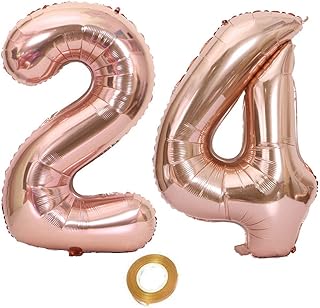 Luftballons Zahl 24, Nummer 24 Luftballon Rosegold Mädchen Luftballons 24. Geburtstag Folienballon, Zahl 24 Rose Gold Nummer 24 Ballons Große 32 Zoll Riese Heliumfolie Ballon