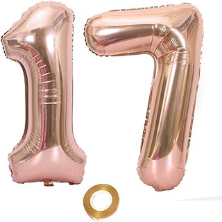 Luftballons Zahl 17, Nummer 17 Luftballon Rosegold Mädchen Luftballons 17. Geburtstag Folienballon, Zahl 17 Rose Gold Nummer 17 Ballons Große 32 Zoll Riese Heliumfolie Ballon