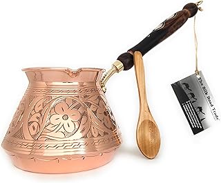 The Silk Road Trade - ACI Serie (XX-Large) – dickste massiv gehämmerte und gravierte Kupfer-Kaffeekanne mit Holzgriff/Herd-Kaffeemaschine, Jazzve, Cezve, Ibrik, Briki (857 ml)