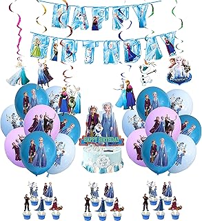 Geburtstag Deko Frozen Luftballons Kindergeburtstag Alles Gute Zum Geburtstag Girlande Tortentopper Spiraldekorationen für Kinder Mädchen Diskönigin Geburtstagsfeier Dekoration